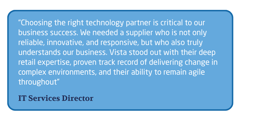 Recognising the complexity of the task, the retailer approached Vista to lead the transformation. Vista’s proven expertise in large-scale, multi-site rollouts and its ability to deliver bespoke, agile solutions made us the ideal partner.