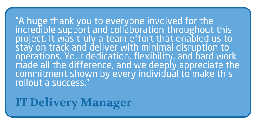- Seamless Rollout: All sites completed by the project end date without major disruption.
